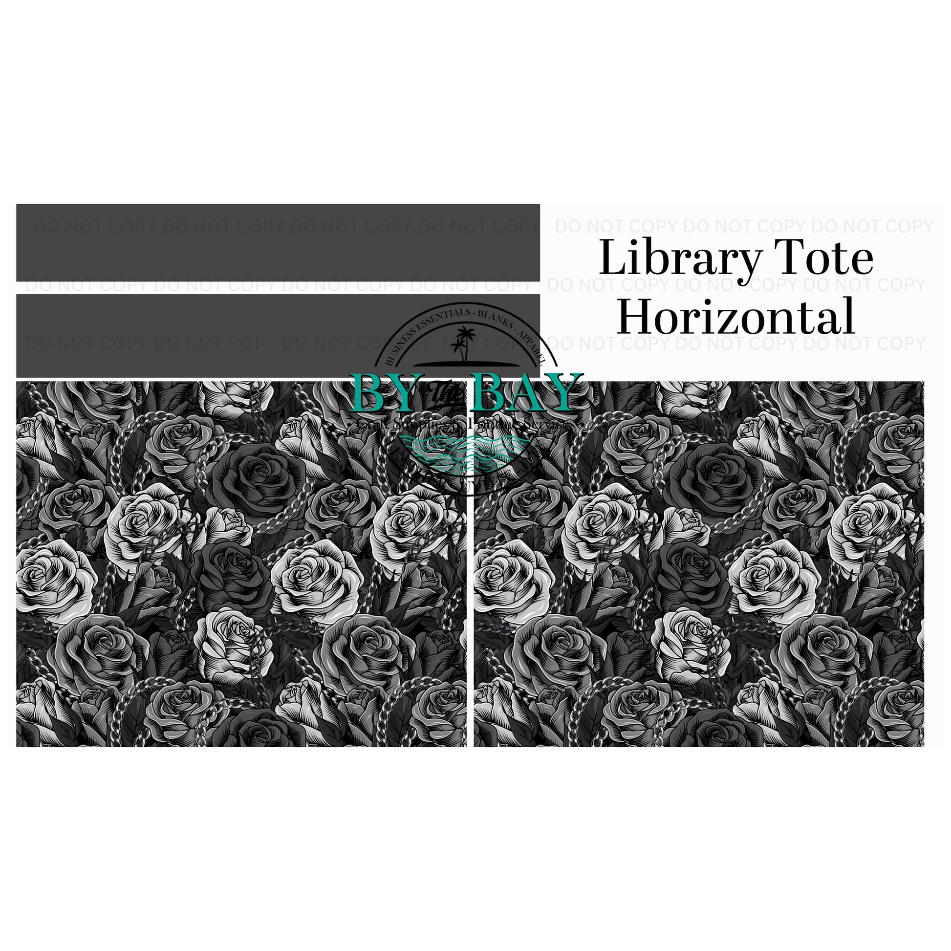 Black grey roses Horizontal Library Tote